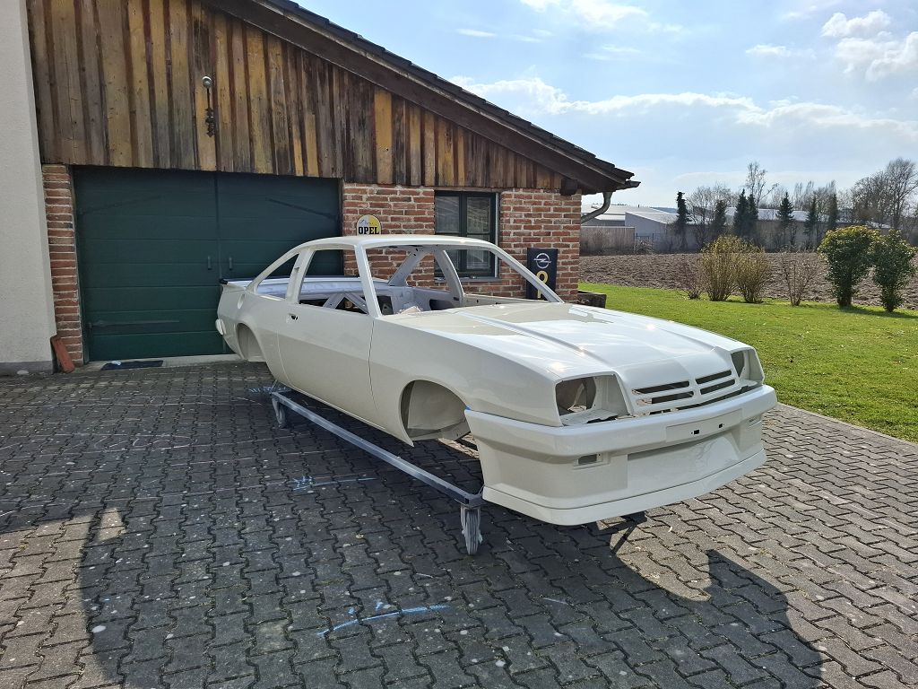 Nach dem entlacken und KTL- beschichten steht der Manta 400 frisch lackiert wieder am Hof und wartet auf den zusammenbau.