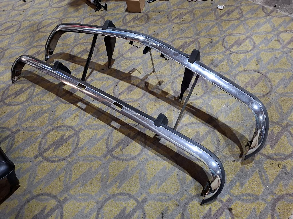 Stoßstange Manta A Chrom hinten mit Haltern und Gummi Hörnern 210,-€